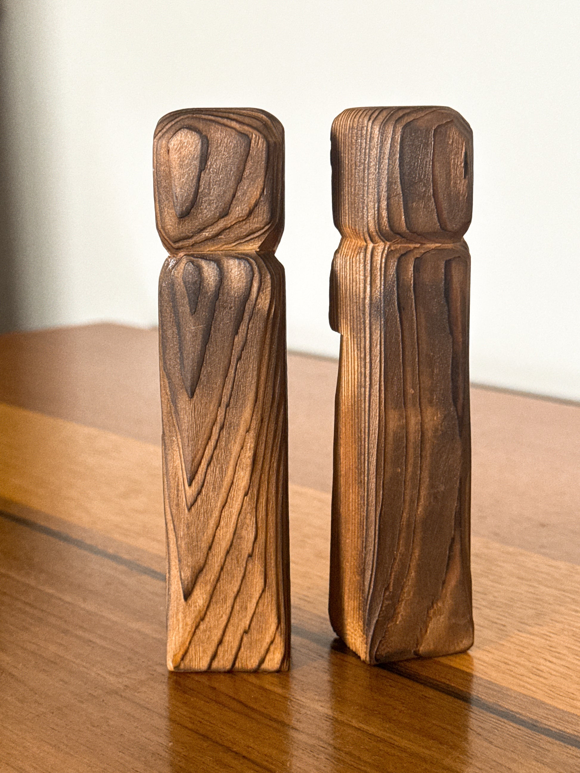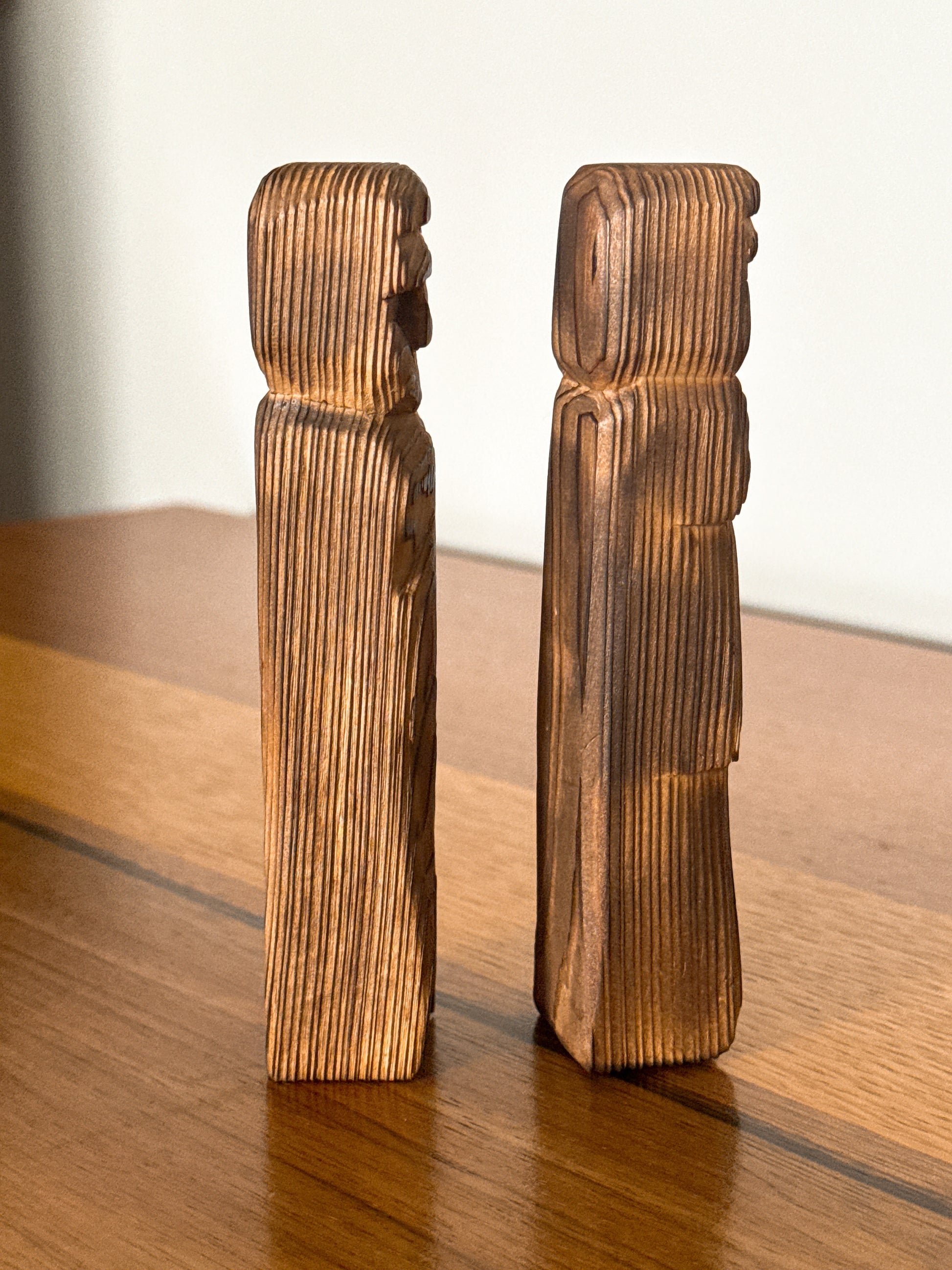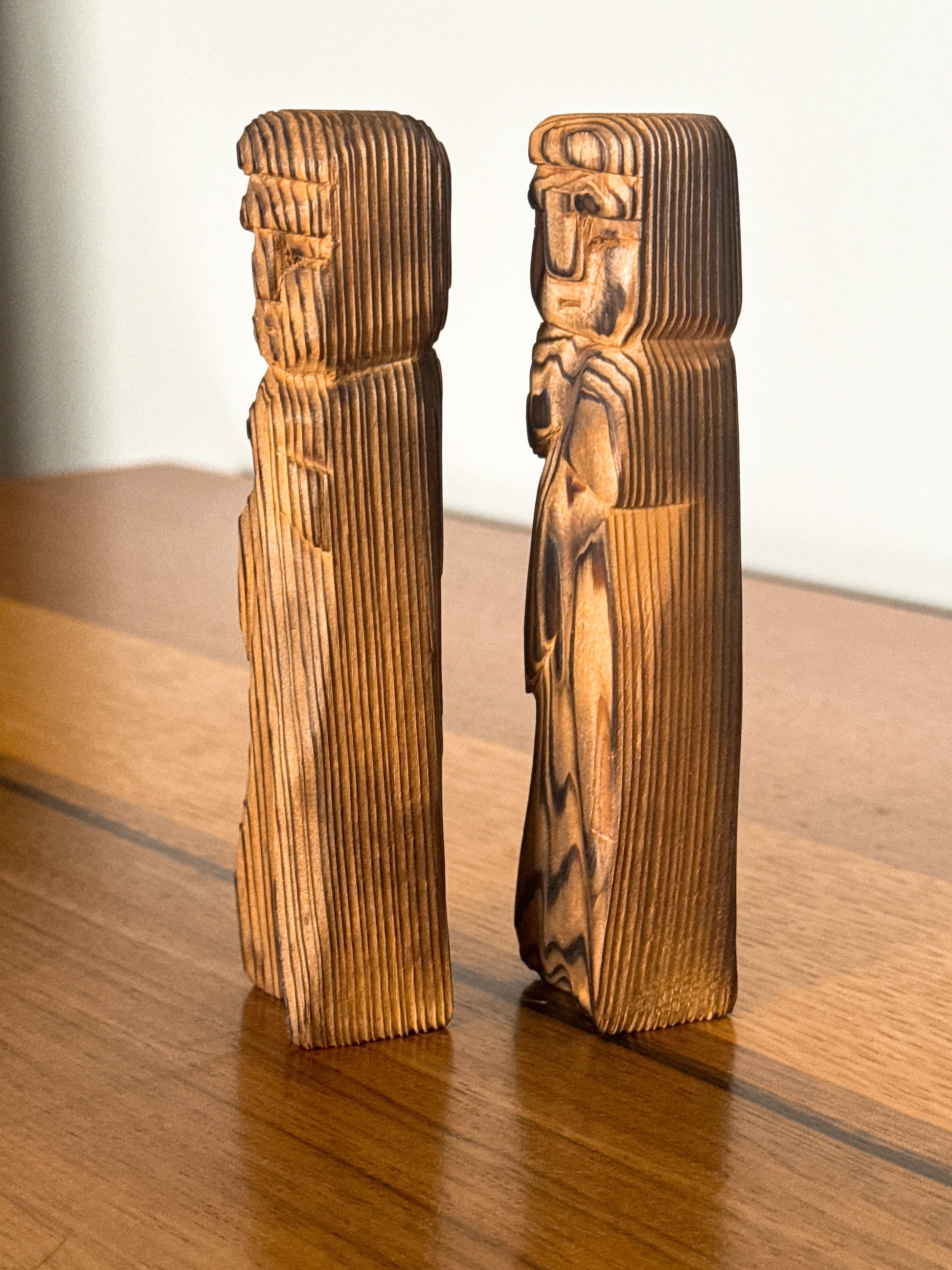 Façonnée dans le bois avec retenue et précision, cette œuvre dégage une beauté calme et intemporelle, propre à l’art populaire japonais.