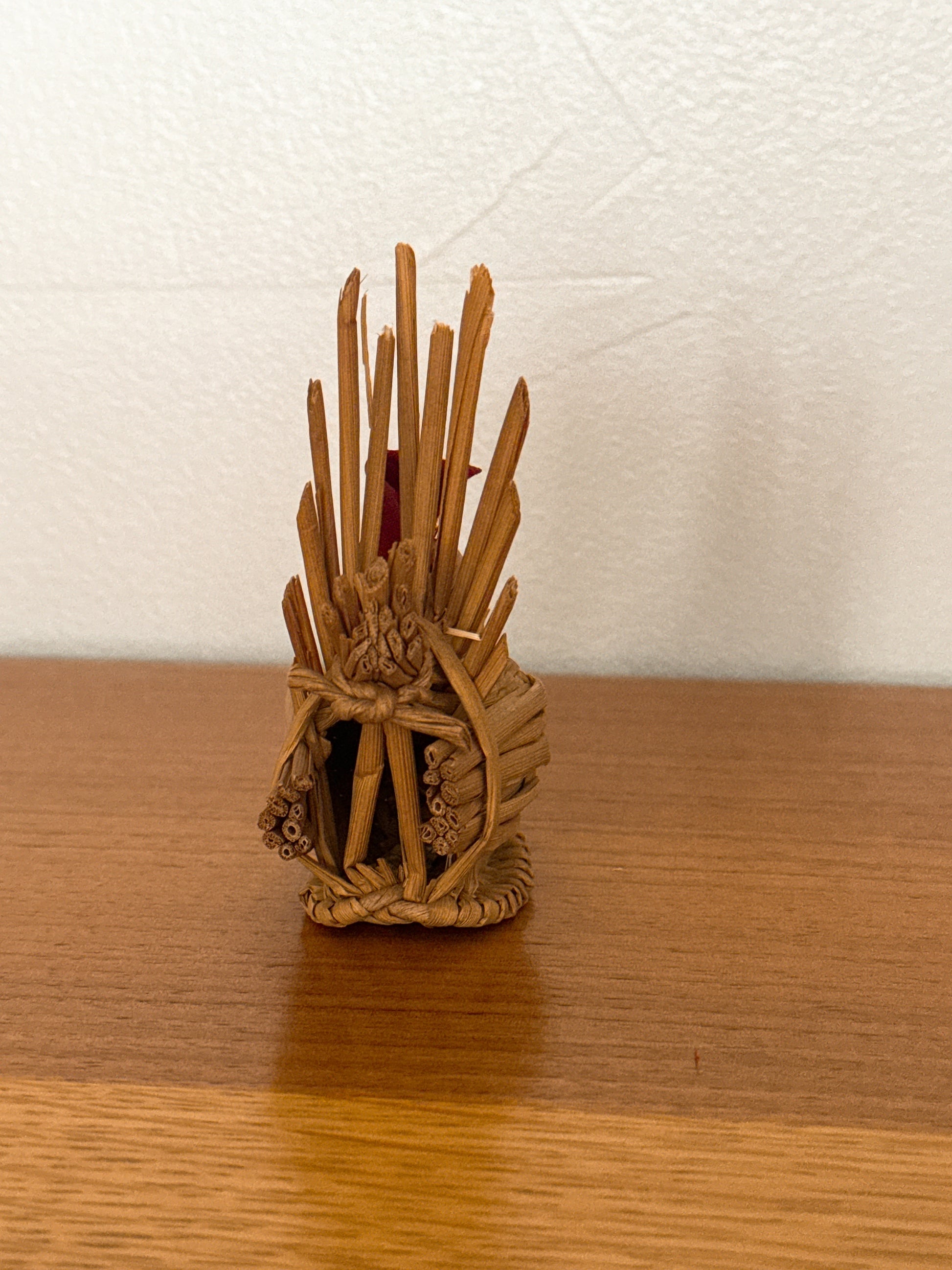 Ce bel objet artisanal, fabriqué à la main à partir de la même paille de millet utilisée pour les balais traditionnels de Kanuma, reflète un savoir-faire ancien transmis de génération en génération.