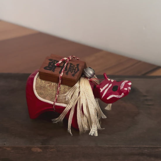 Modelée en papier mâché, au corps arrondi et au cou oscillant, l’akabeko arbore des taches noires symbolisant la variole : on dit qu’elle aurait porté la maladie à la place des enfants.