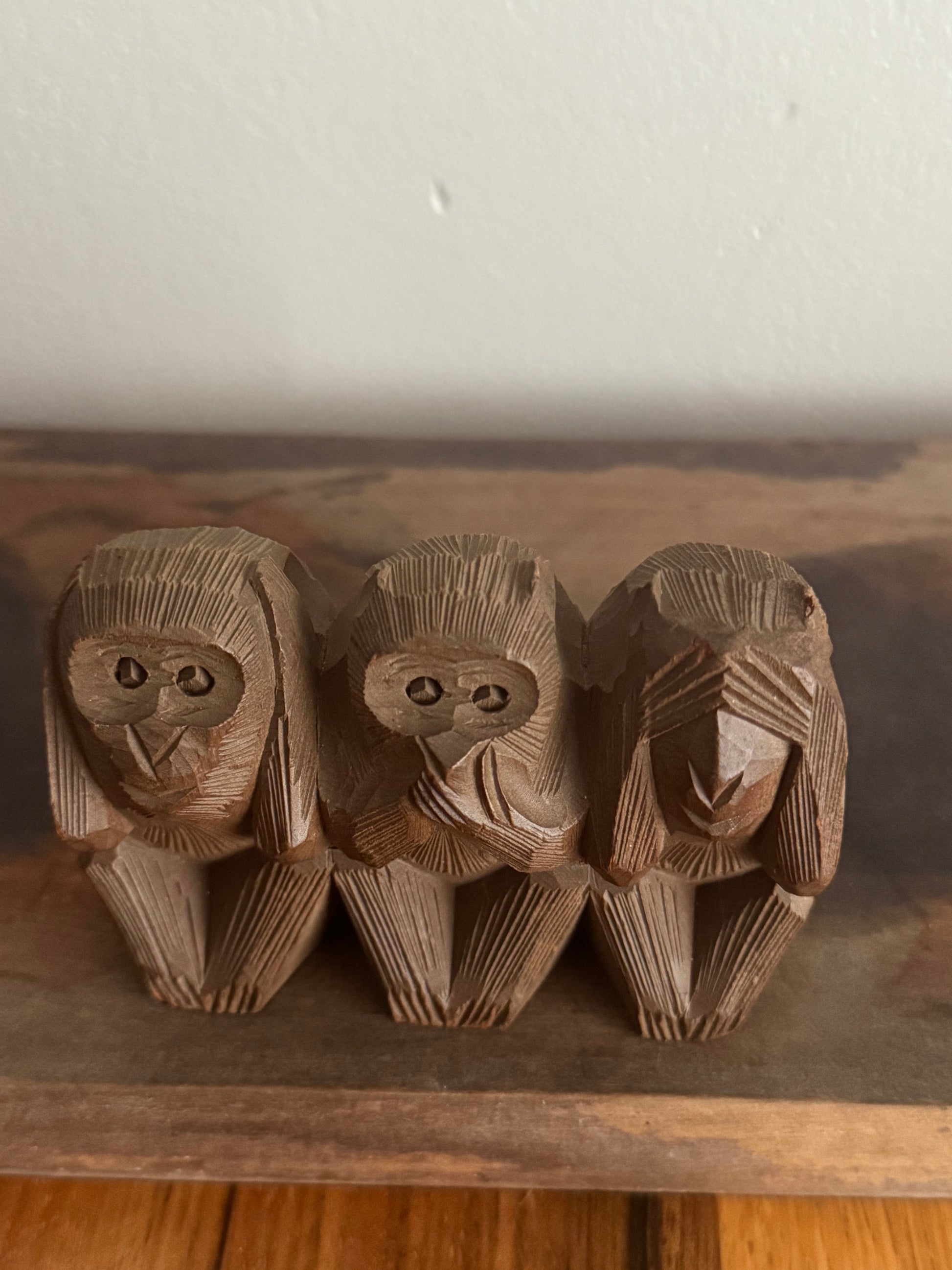 LES TROIS SINGES DE LA SAGESSE – STATUETTE EN BOIS